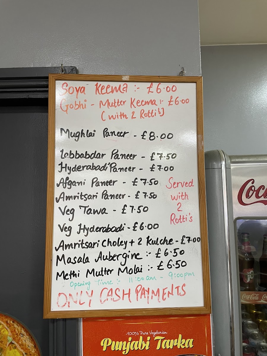 “Lovely small resturant in heart of Leicester Belgrave Road. The food was fresh, flavorful, and authentically Punjabi. The paneer dishes were exceptional, and the roti was perfectly soft. The staff were friendly and attentive, and the service was quick. The ambiance was cozy and welcoming. I highly recommend this place for anyone craving traditional Indian vegetarian cuisine. there is plenty of parking on otherside of road near Shiva temple or free parking on side of road on weekend. I will definitely be back!”